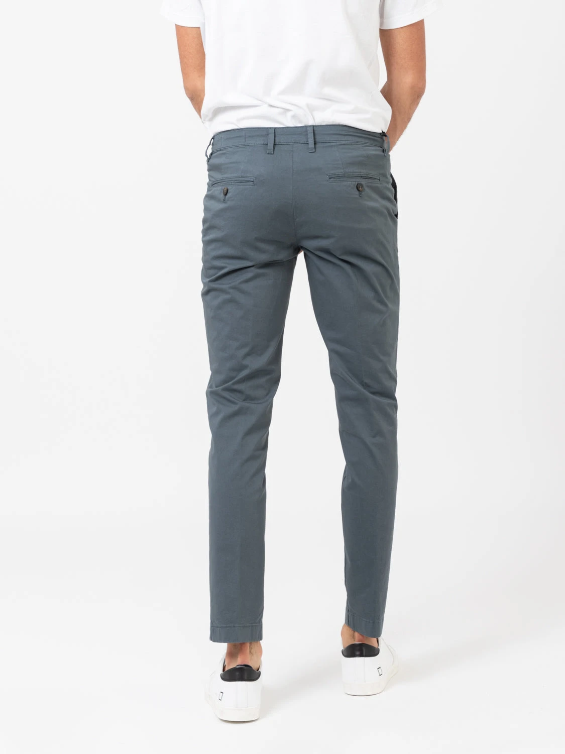 Tasche laterali e posteriori con bottoncini.